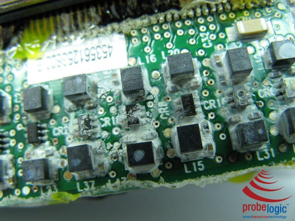 What happens when Cidex or other Fluids get into a probe connector? Check out the pics. This is an Philips X7-2t TOE probe.