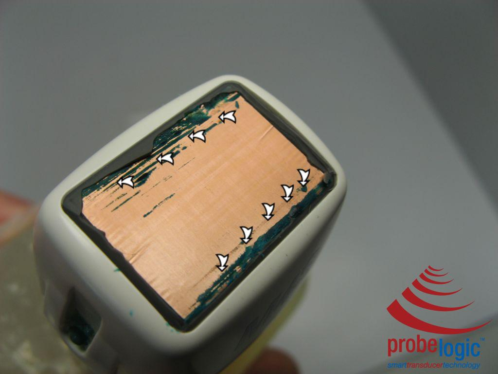 by July 11, 2016 Probe Testing Here is another example of fluid under the lens of a probe. This time a GE M3S probe.If you have any doubt as to whether there is a ‘leak’ in your lens. Let us know!
