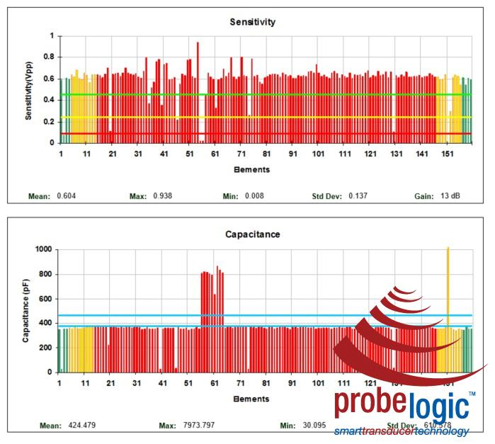 That interference raining down on the left side and the stringy artifact on the right side are not real, there is nothing against the face of the probe. The acoustic test yields these results: