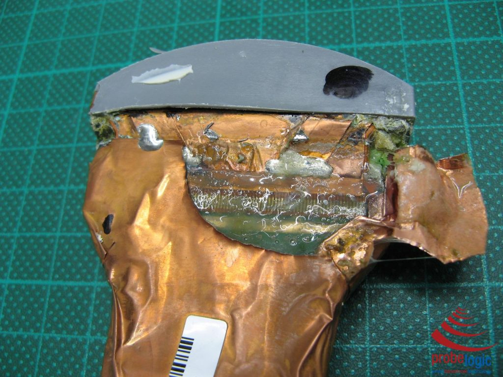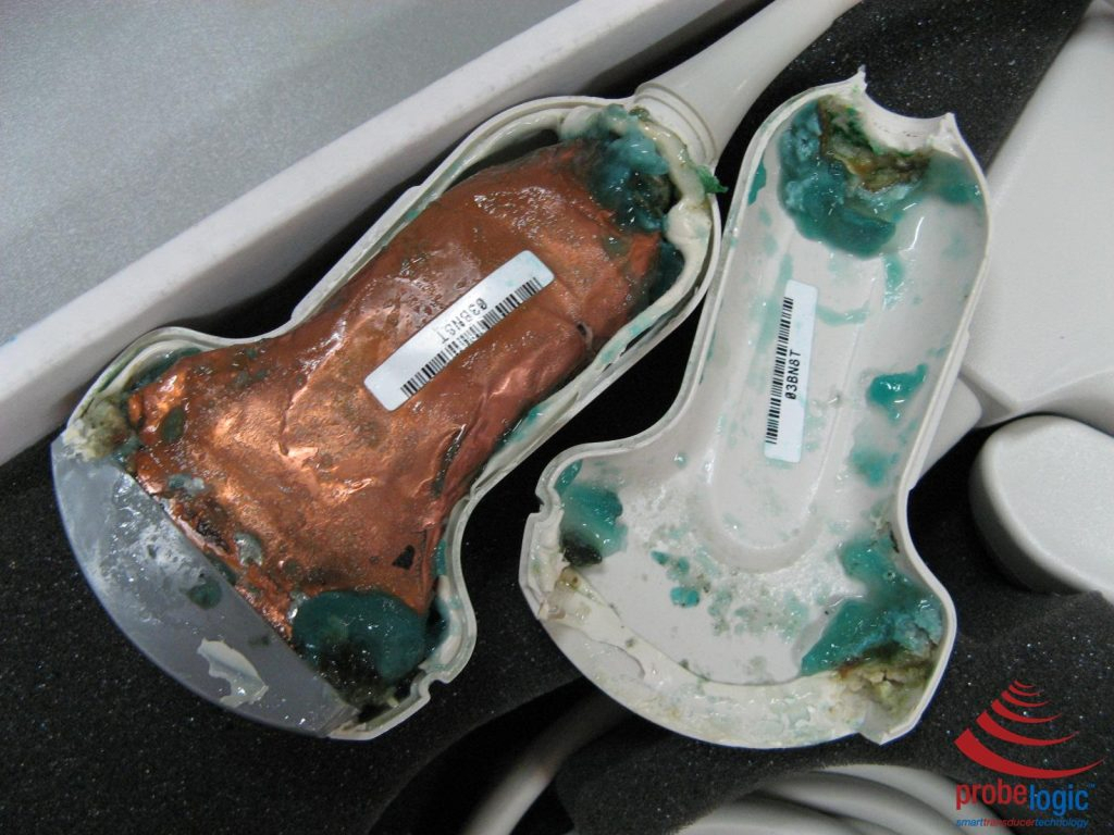 After removing the covers look at the amount of ultrasound gel and other fluid that has been forced inside the probe.