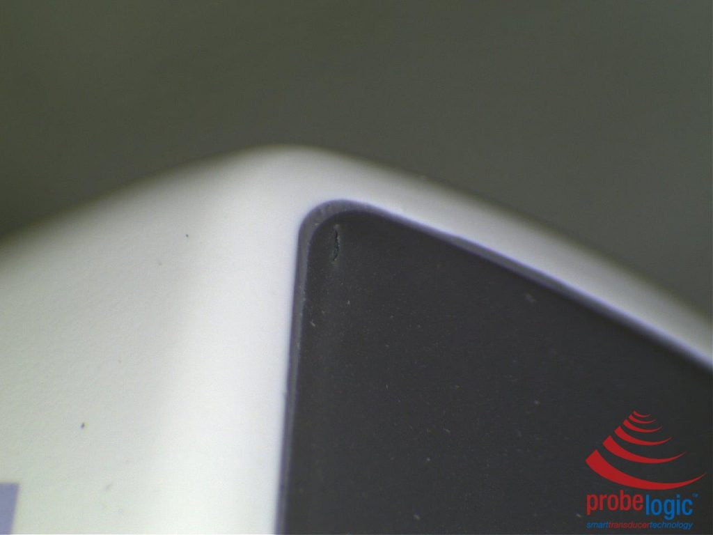 The probe is an M4S with a tiny cut in the edge of the acoustic lens which looks like this: