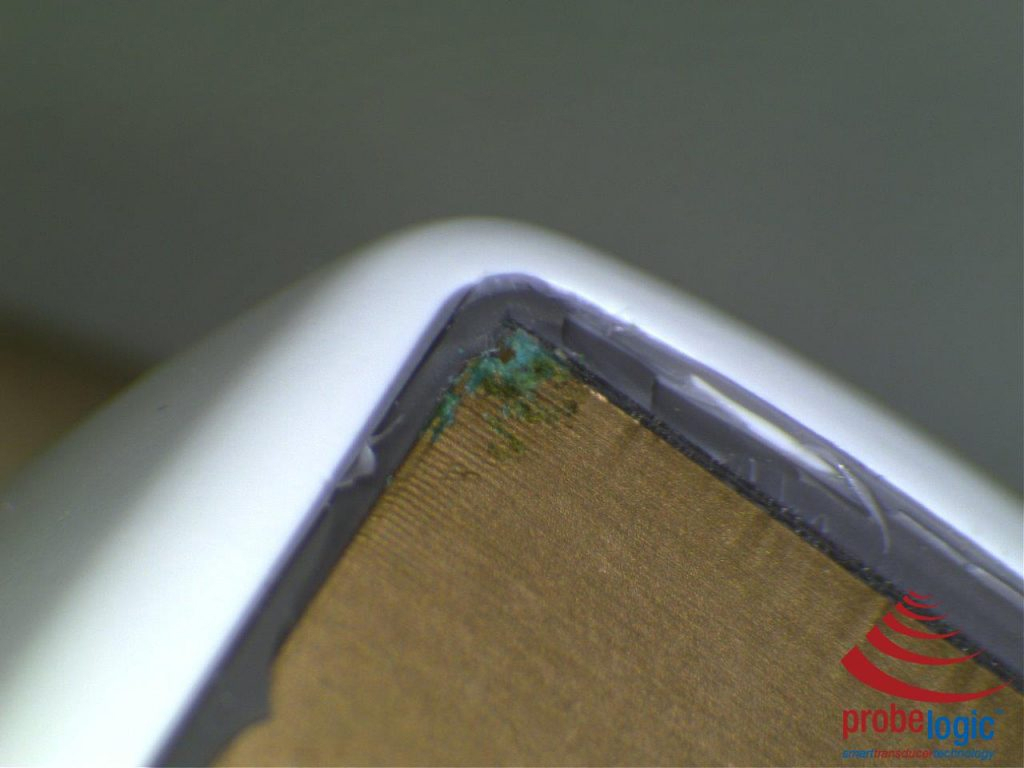 After removing the lens, the corrosion can be clearly seen: